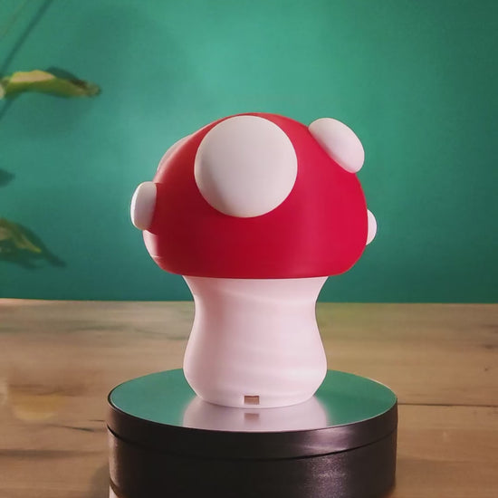 Geef je bureau of interieur een 1UP met deze 3D-geprinte paddenstoellamp! Geïnspireerd door iconische videogames, is deze kleurrijke bureaulamp voorzien van een felgekleurde kap (verkrijgbaar in rood, groen of roze) met witte stippen, druk op bovenkant om het licht aan te zetten.